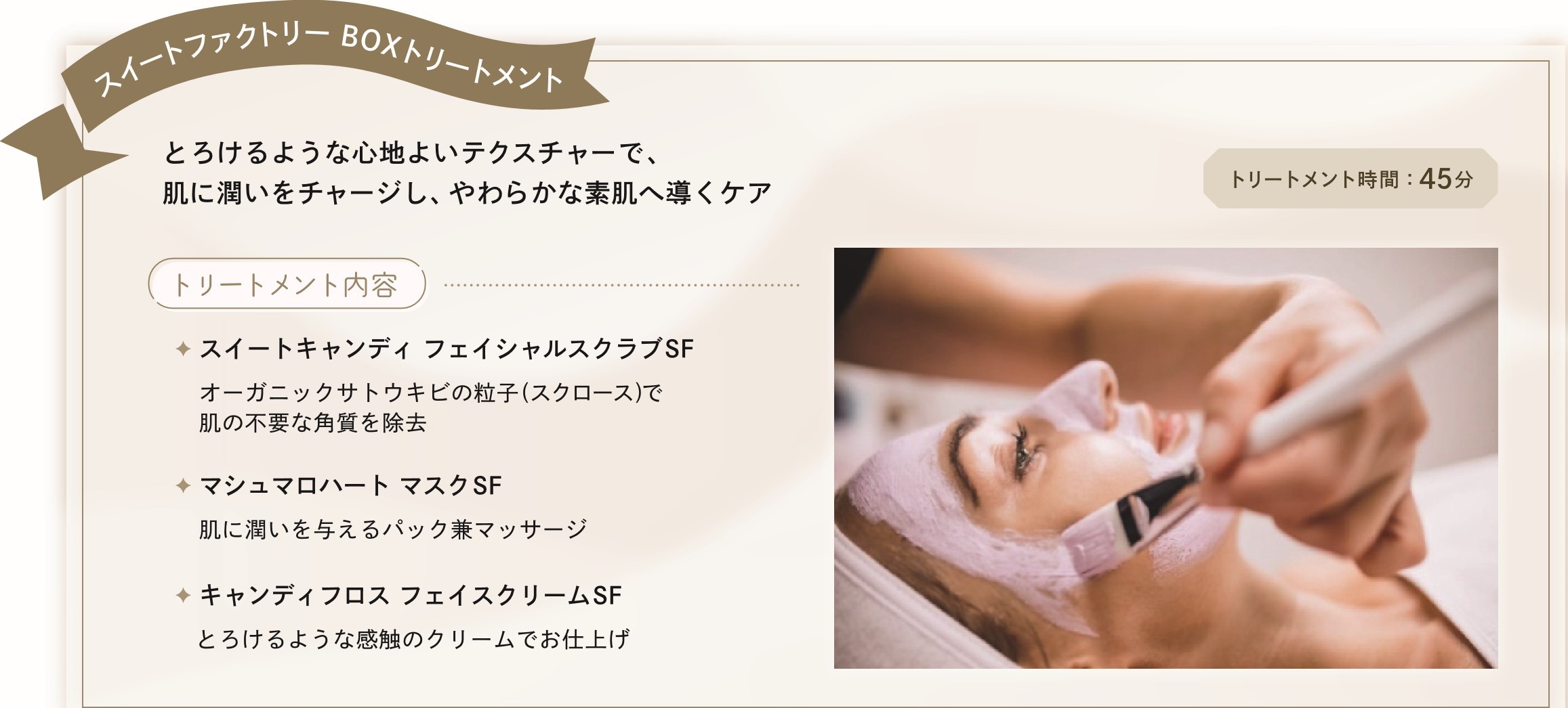 マシュマロマスク→ マッサージ→ お仕上げ